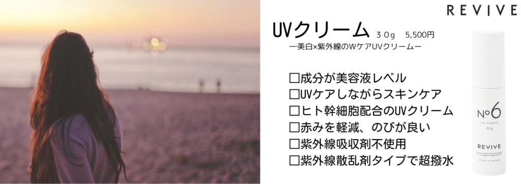 REVIVEのUVクリームは、単なる日焼け止めではありません。日中も肌を育てる「日中用美容液」の様な側面を持っています。