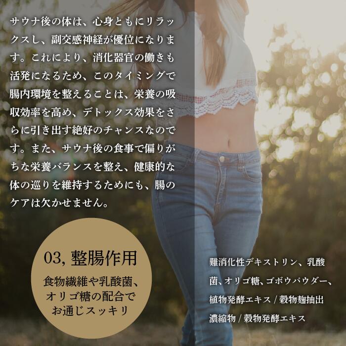 「サウナ後サポートサプリ」で、サウナ後の充実感を損なうことなく、理想のボディと健康的なライフスタイルを手に入れましょう。もう、サウナ後の罪悪感とはお別れです!