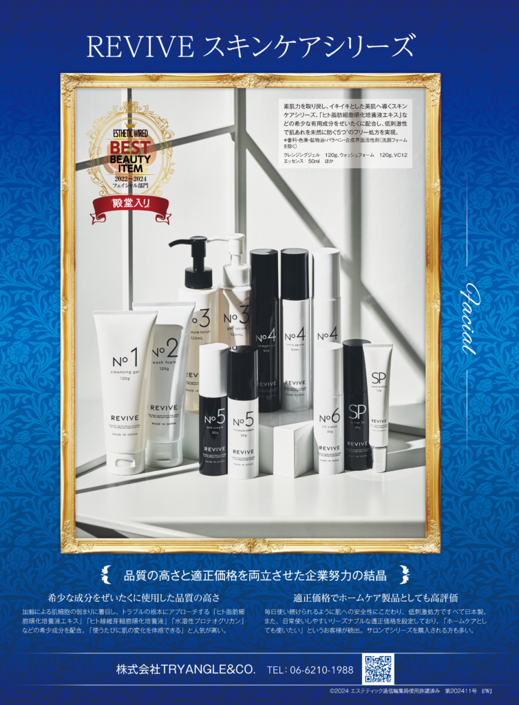 「フェイシャル部門」ベストアイテム賞を受賞し続け、皆様に愛され続けている「REVIVEスキンケアシリーズ」を今後ともよろしくお願い申し上げます。