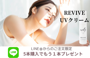 これからの紫外線対策に向けて REVIVE UVクリーム⑤+① キャンペーンのお知らせ LINE@からの注文限定5本購入でもう1本 プレゼントキャンペーンを実施いたします!
