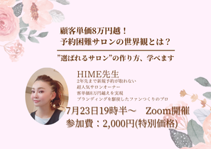 選ばれるサロンの作り方学べます!!!!大人気のHIME先生をお招きしてTRYANGLE&CO.のクライアント様限定のセミナーを開催させていただきます!!