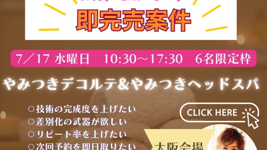 年内予約の取れないサロンを構築した大西先生による差別化やみつきメソッド