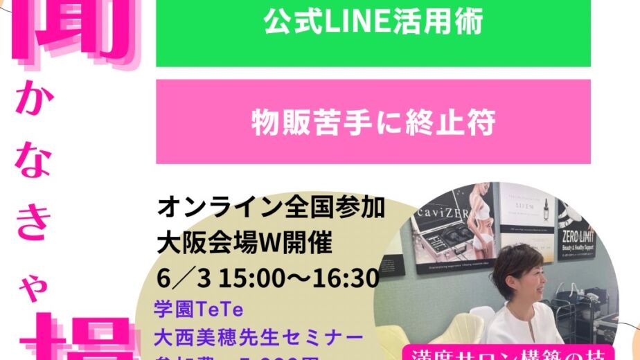 公式LINE活用法・物販苦手に終止符セミナーを開催いたします!!