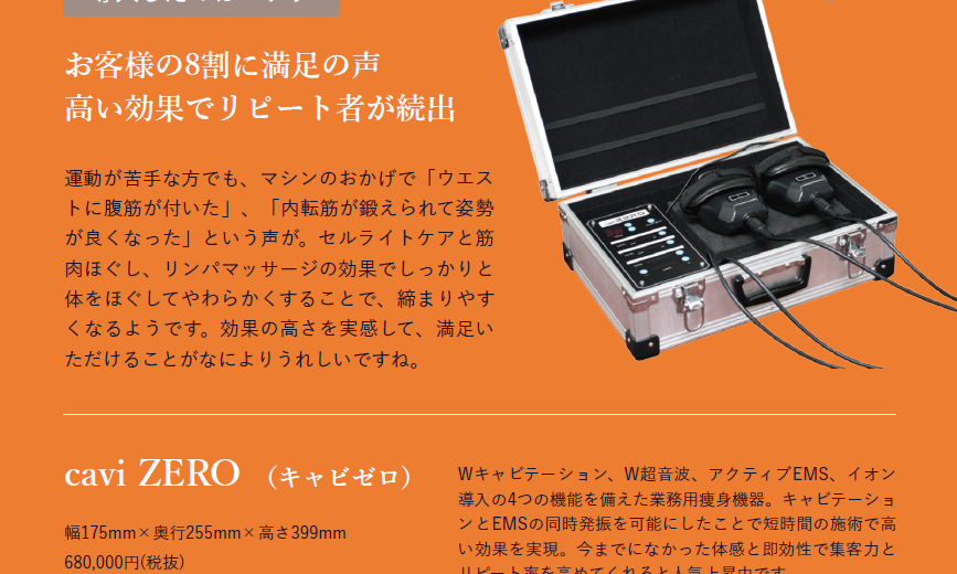 弊社の自慢の痩身機「cavi ZERO」は