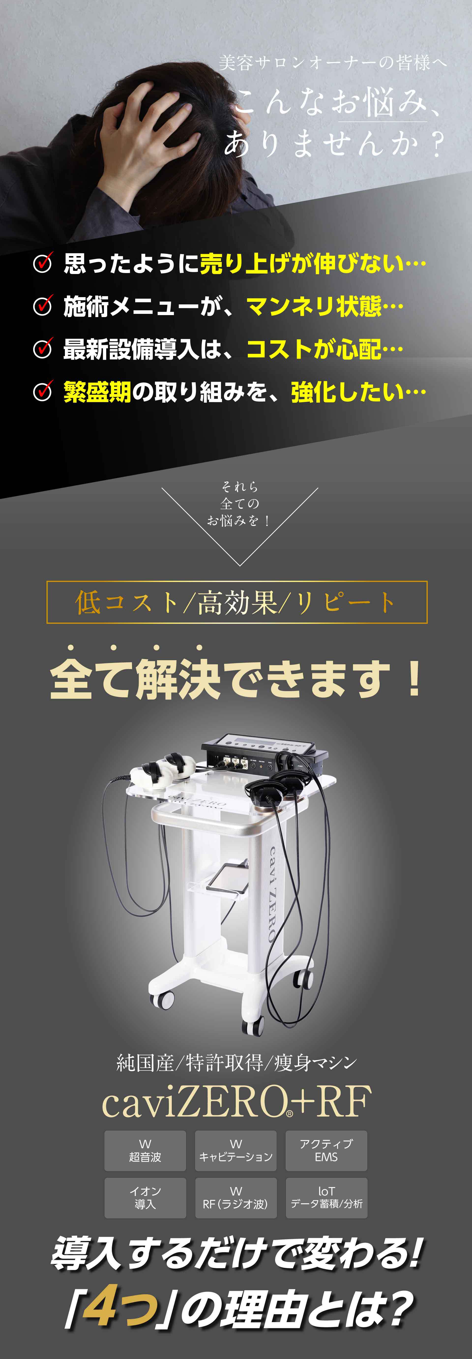 A.超音波が体内に届き骨伝導により、若干キーンとした音が響きますが気にならない程度です。体感は温かく、軽い振動がある程度ですので、痛みはございません。EMS による筋肉運動で、もし刺激を強く感じた場合でもパワー調整が可能ですので、心地よい環境で施術を受けられます。